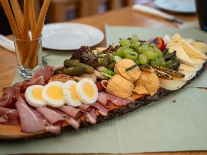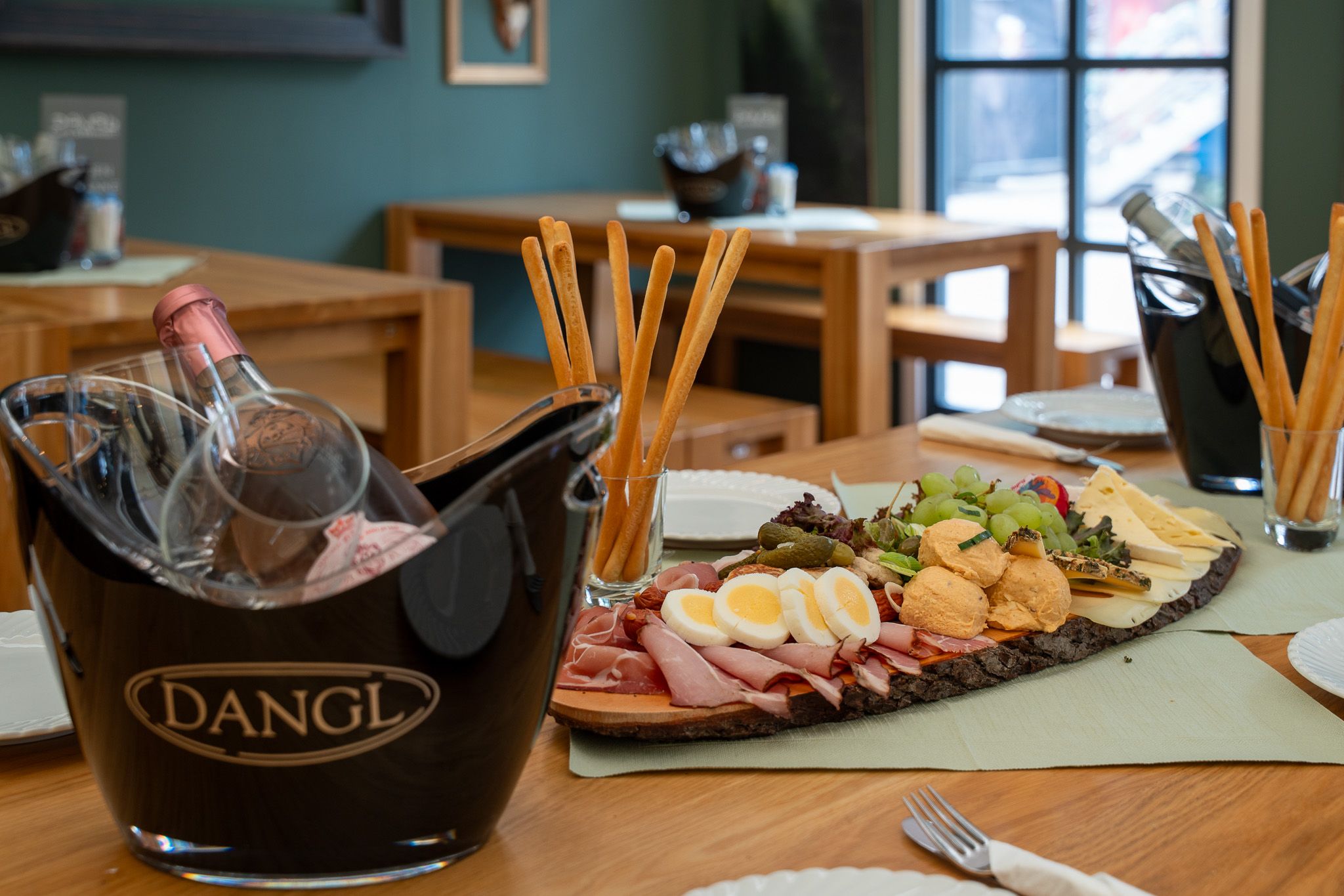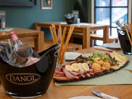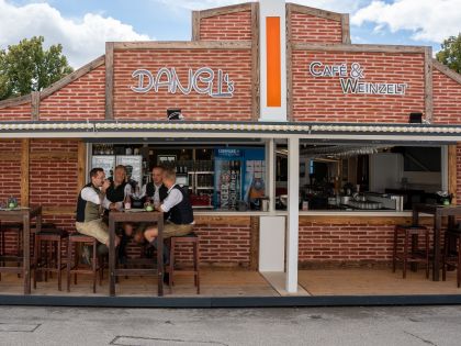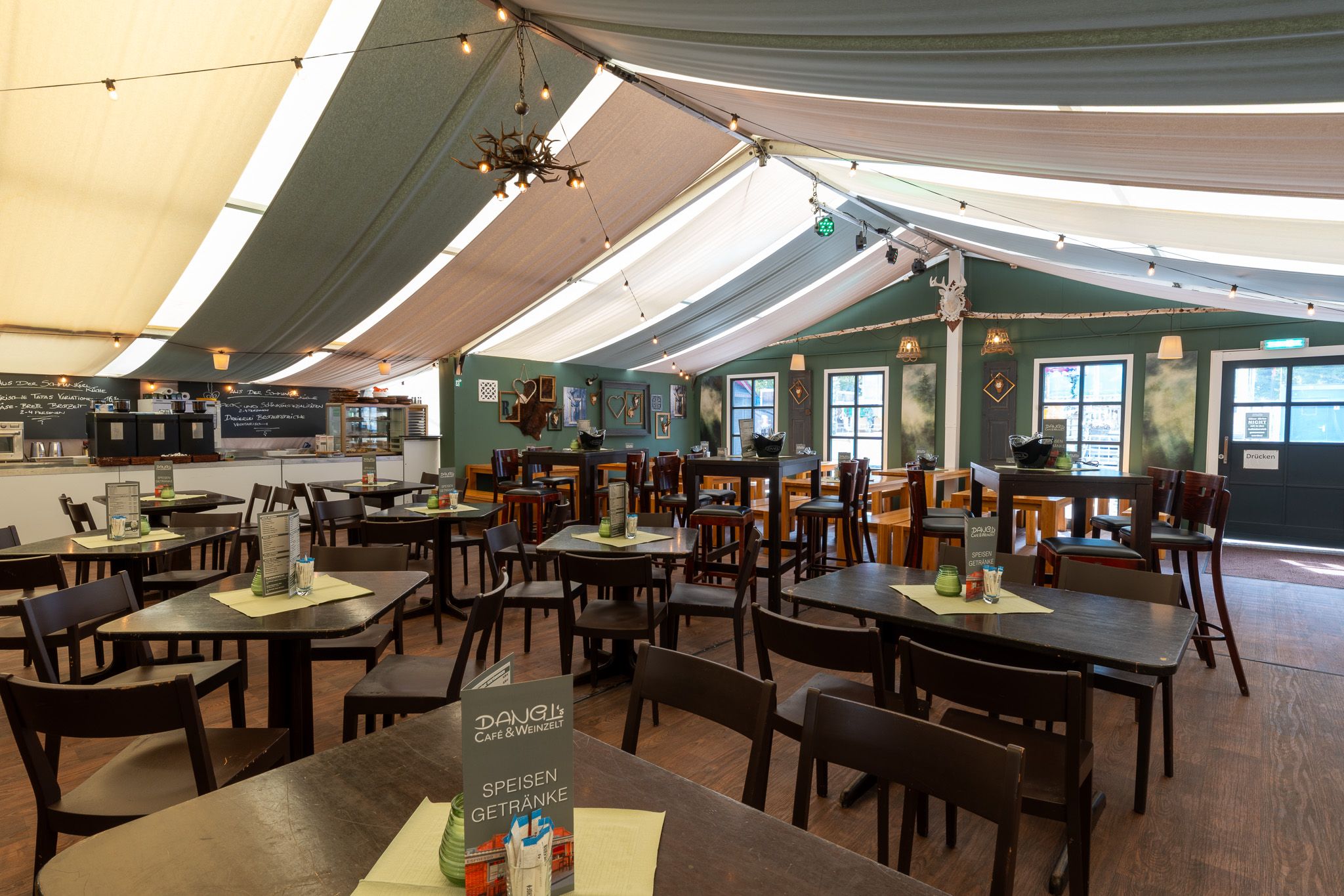 Sitz- und Stehmöglichkeiten mit Außenbereich